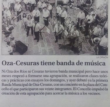 El recorte de periódico que has leído es del 23 de Junio del 2015. Ese día fue uno de los días más felices. Tras fundar la Escuela de Música de Oza-Cesuras en el 2014, un año más tarde la Banda de Música daba su primer concierto.